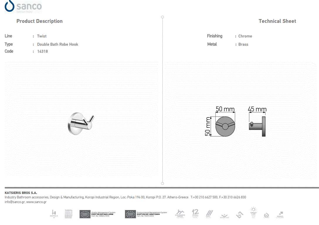 Άγκιστρο Διπλό Black Mat Sanco Twist 14318-Μ116Ειδική Τιμή 22,50 € Κανονική τιμή 25,00 €