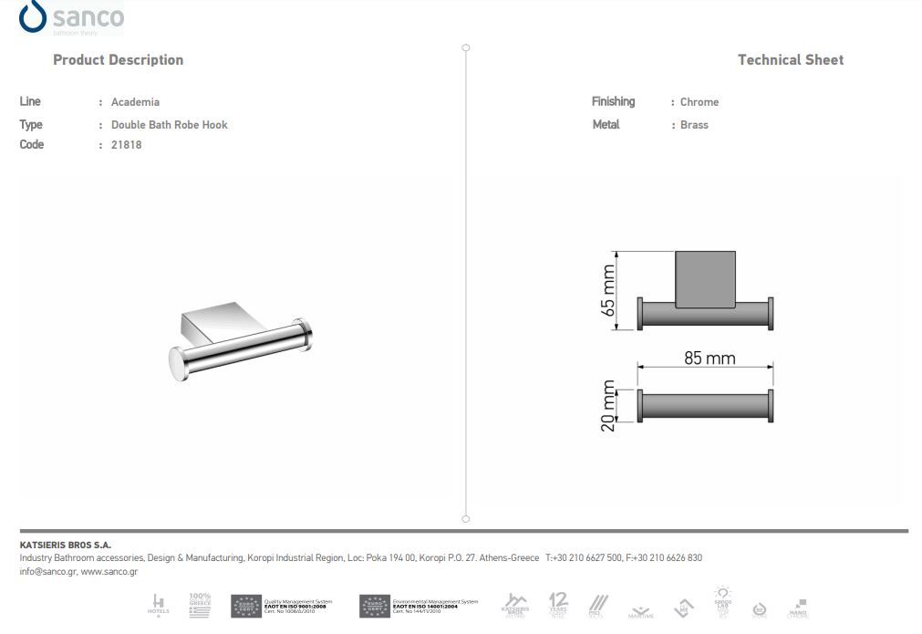 Άγκιστρο Διπλό Sanco Academia Dark Bronze Mat 21818-DM25Ειδική Τιμή 40,50 € Κανονική τιμή 45,00 €