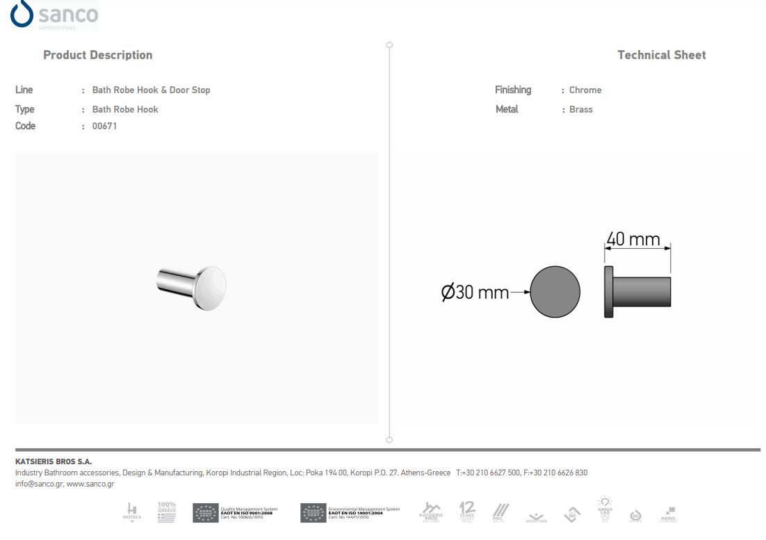 Άγκιστρο Μονό Bronze Mat Sanco Hotel Robe Hook 00671-M25