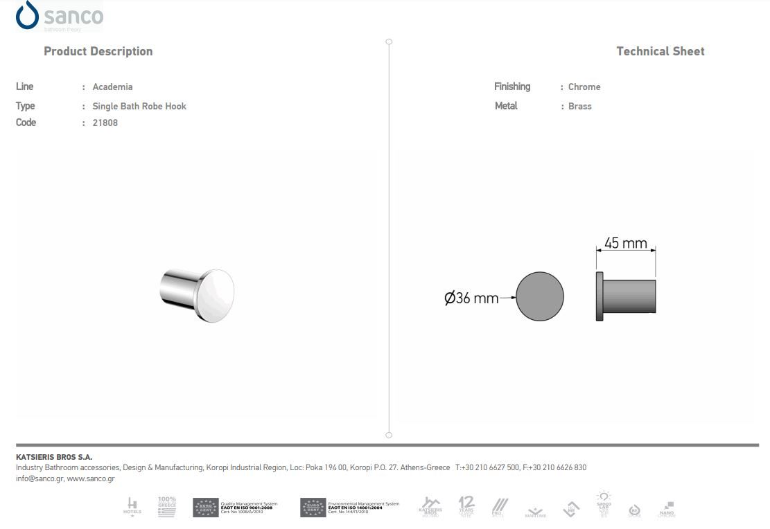 Άγκιστρο Μονό Sanco Academia Chrome Mat 21808-A03Ειδική Τιμή 13,50 € Κανονική τιμή 15,00 €