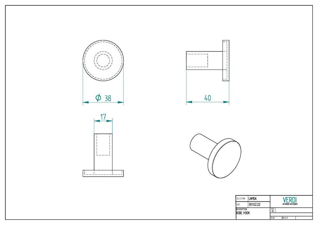 Άγκιστρο Μονό W38xD40xH38mm Warm Gold PVD Verdi 3010253