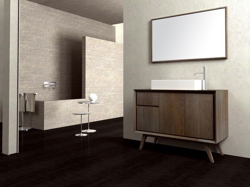 Έπιπλο Μπάνιου Μ100xΠ45xY53 cm Βάση,Νιπτήρας, Καθρέπτης Δρυς Ανθρακί σε Κ/Π Θαλάσσης Savvopoulos Elegance Firenze 01
