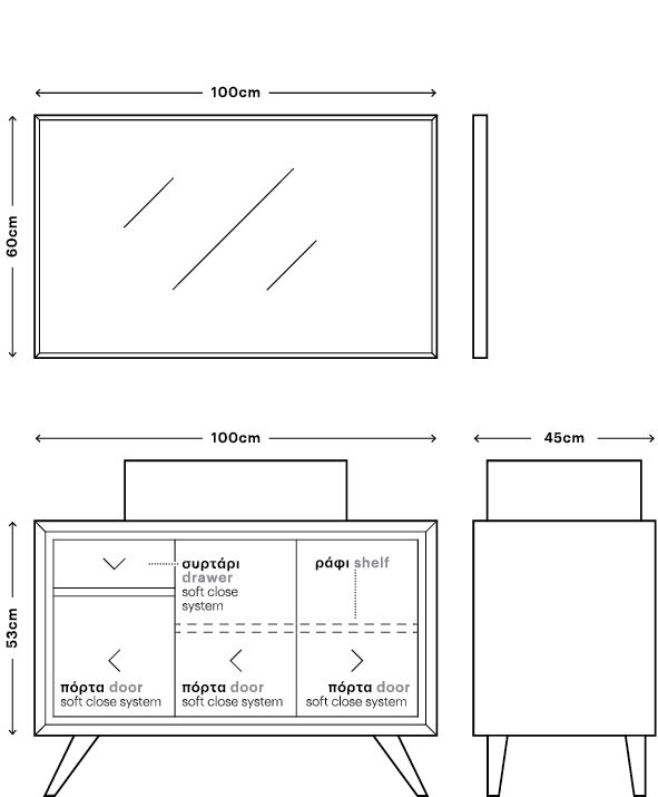 Διαστάσεις Καθρέπτη: Ύψος 60 εκ. Πλάτος 100 εκ.