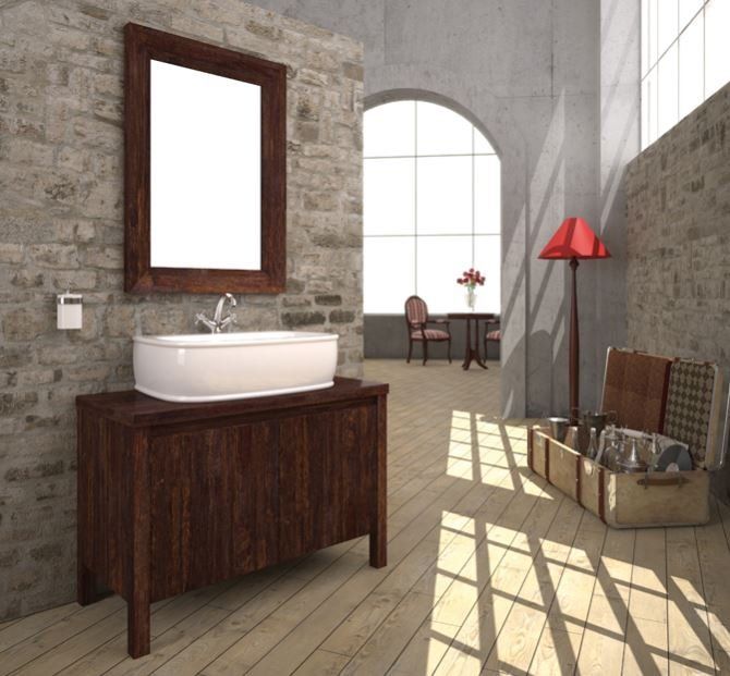 Έπιπλο Μπάνιου Μ100xB50xY70cm Βάση-Πάγκος-Νιπτήρας-Καθρέπτης, Μασίφ Ξύλο Πεύκου Καρυδί Savvopoulos Ethnik 02