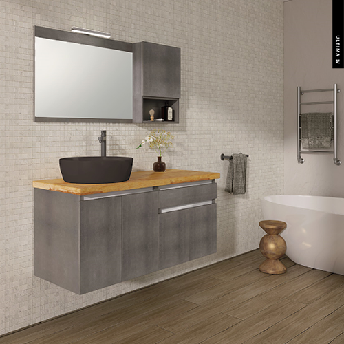 Έπιπλο Μπάνιου Μ120xB50xY55cm Βάση-Πάγκος Μασίφ Ξύλο Πεύκο-Νιπτήρας-Καθρέπτης-Φωτιστικό-Άνω Ντουλάπι Μελαμίνη σε MDF Cemento Savvopoulos Ultima 04-8763Ειδική Τιμή 1.168,00 € Κανονική τιμή 1.448,00 €
