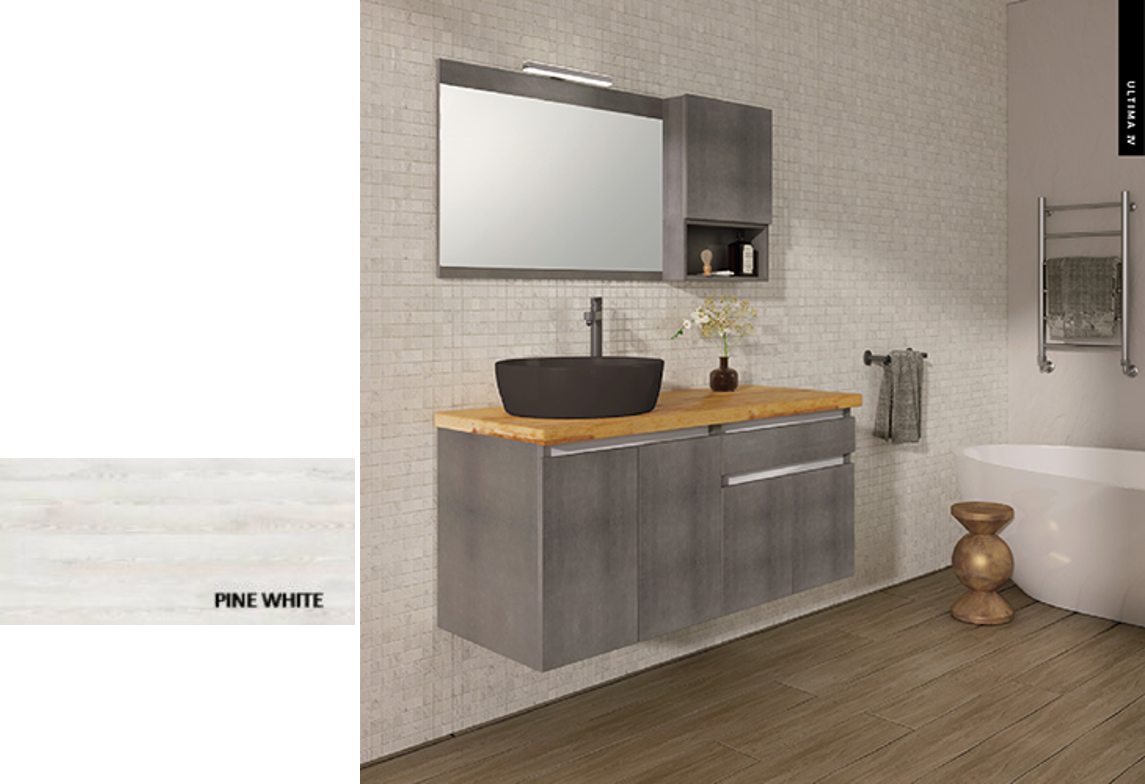 Έπιπλο Μπάνιου Μ126xB50xY55cm Βάση-Πάγκος Solid 12mm-Νιπτήρας-Καθρέπτης-Άνω Ντουλάπι, Μελαμίνη σε MDF Pine White Savvopoulos Ultima 01-8010Ειδική Τιμή 1.368,00 € Κανονική τιμή 1.696,32 €