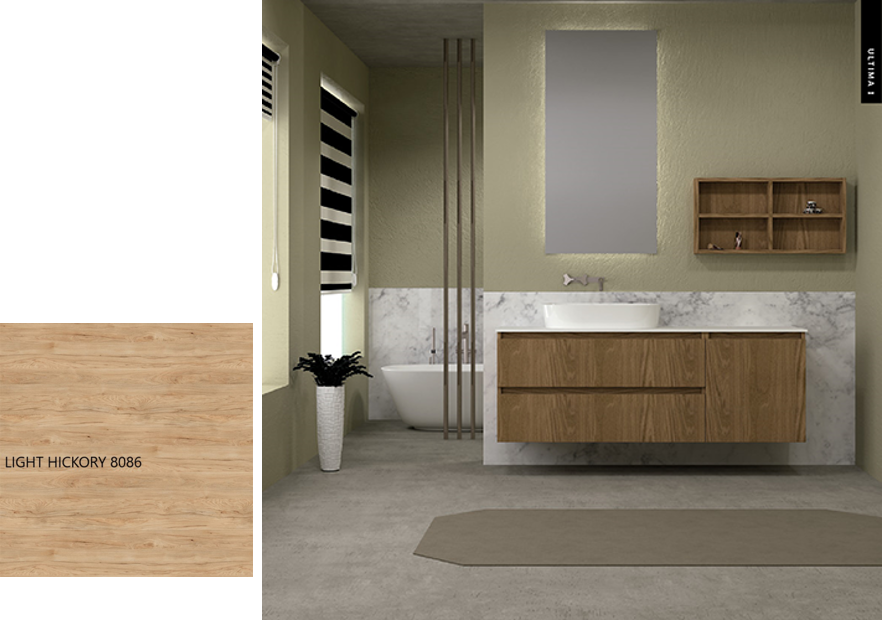 Έπιπλο Μπάνιου Μ126xB50xY55cm Βάση-Πάγκος Solid 12mm-Νιπτήρας-Καθρέπτης-Άνω Ντουλάπι, Μελαμίνη σε MDF Light Hickory Savvopoulos Ultima 01-8086Ειδική Τιμή 1.368,00 € Κανονική τιμή 1.696,32 €