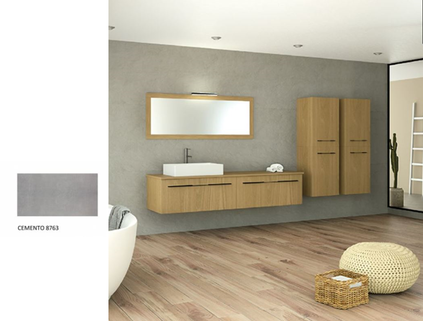 Έπιπλο Μπάνιου Μ140xB50xY35cm Βάση-Πάγκος-Νιπτήρας-Καθρέπτης-Φωτιστικό-2 Ερμάρια Μελαμίνη σε MDF Cemento Savvopoulos Ultima 08-8763