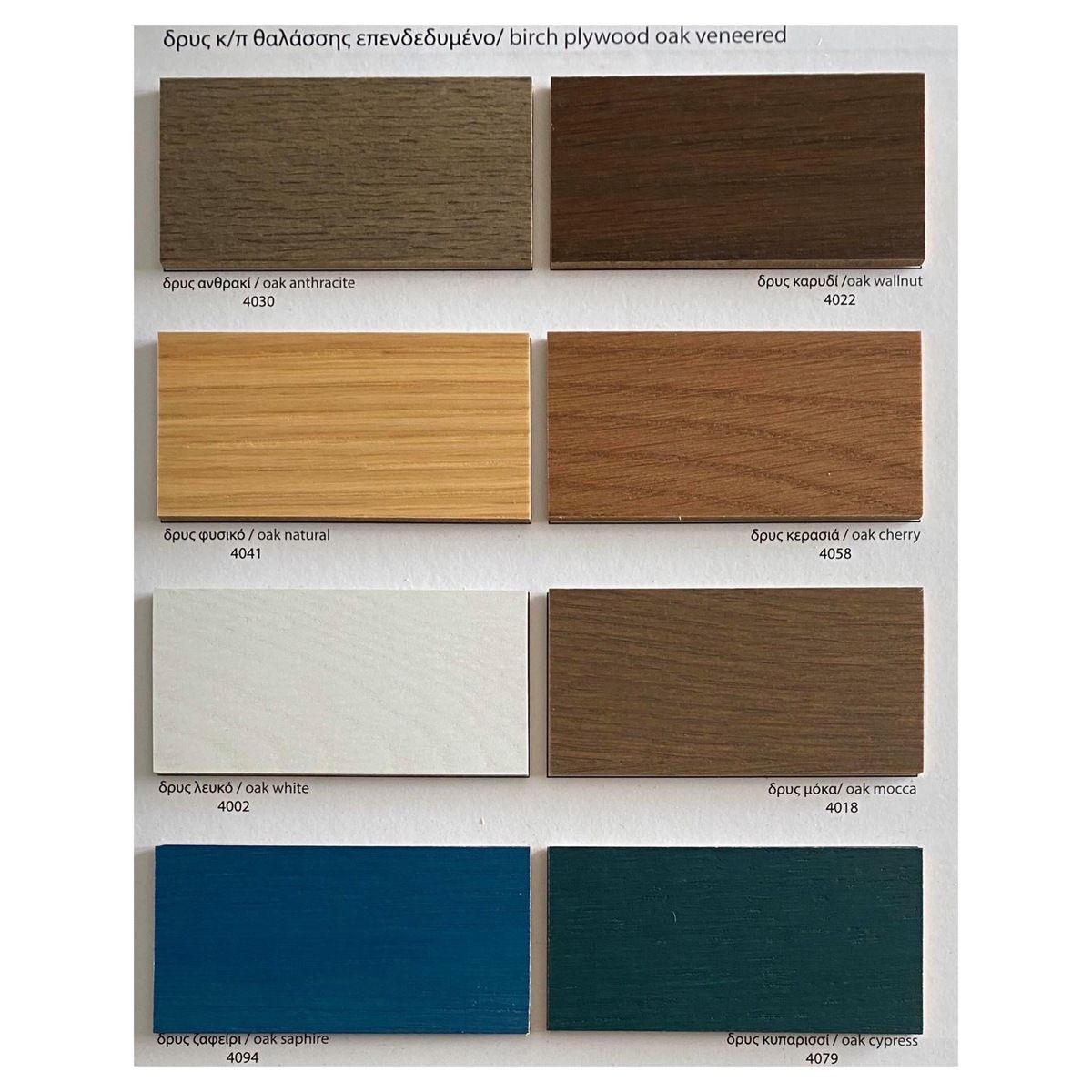 Υλικό / Χρώμα Βάσης Επίπλου:Επενδεδυμένος Φυσικός Καπλαμάς Δρυς σε Κόντρα Πλακέ Θαλάσσης 18mm.