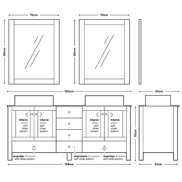 Διαστάσεις Καθρέπτη x2 : Ύψος 80 εκ. Πλάτος 70 εκ.