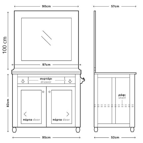 Σειρά: RusticoΔιαστάσεις Βάσης Επίπλου: Π97*Υ82*Β52 cm