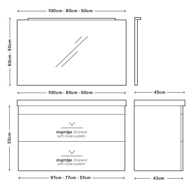 Έπιπλο Μπάνιου Σετ Βάση Μελαμίνη Μ57xΥ55xΒ45cm Νιπτήρας-Καθρέπτης-Φωτιστικό Savvopoulos Luxury Shape-I-60-M