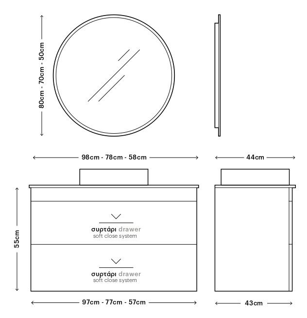 Έπιπλο Μπάνιου Σετ Βάση Μελαμίνη Μ77xΥ55xΒ44cm Νιπτήρας-Πάγκος-Καθρέπτης Savvopoulos Luxury Shape-II-80-M