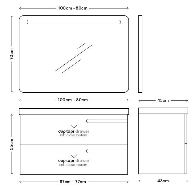 Η σύνθεση επίπλου διατίθεται σε 80cm & 100cm 16 αποχρώσεις Λάκας Ματ ή Γυαλιστερής.