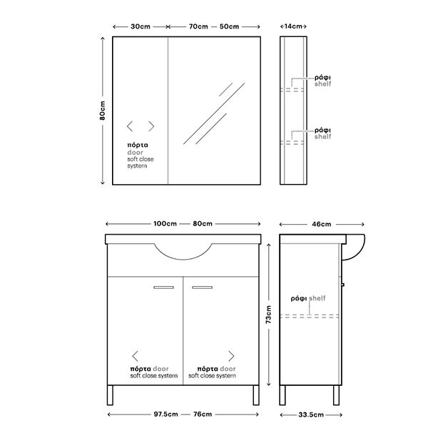 Έπιπλο Μπάνιου Σετ 80 εκ. Βάση-Νιπτήρας-Καθρέπτης-Φωτιστικό-Άνω Ντουλάπι Savvopoulos Cronos II