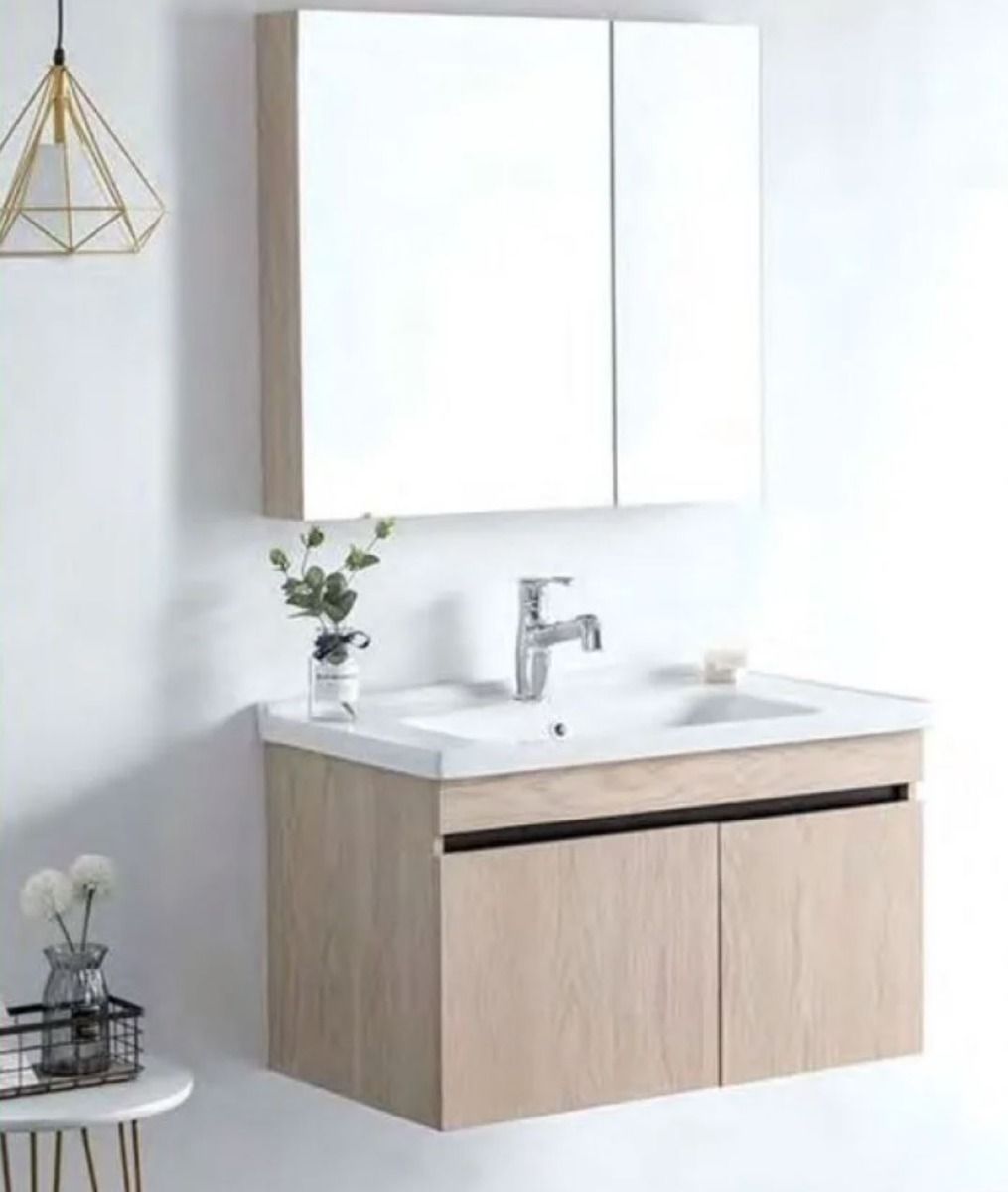 Έπιπλο Μπάνιου Σετ 800x470x460mm Βάση-Νιπτήρας-Καθρέπτης Ντουλάπι, Ξύλο Plywood (Κόντρα Πλακέ) Domistyle 31054