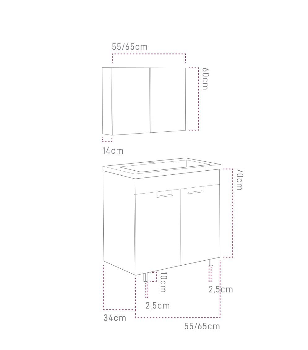 Έπιπλο Μπάνιου 65 εκ.με Νιπτήρα & ποδαράκια Χρώμα Pine Grey Sanitec Lido 65