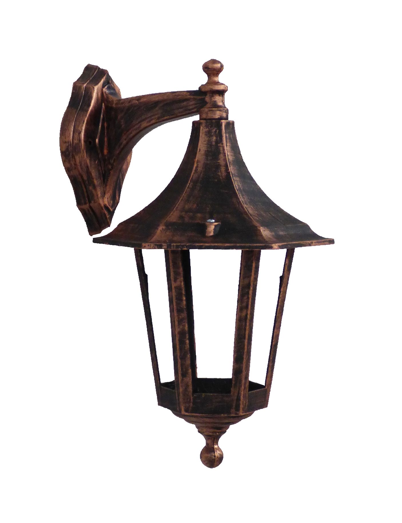 Φωτιστικό τοίχου 6γωνο πλαστικό πατ.χαλκός DOWN LP-401AN COPPER Τεχνικά χαρακτηριστικά Πλαστικό Χρώμα πατ.χαλκός / copper H39,5 x 22,5 x 20,5cm E/27 max 10w LED IP44 Ελληνικό Προϊόν