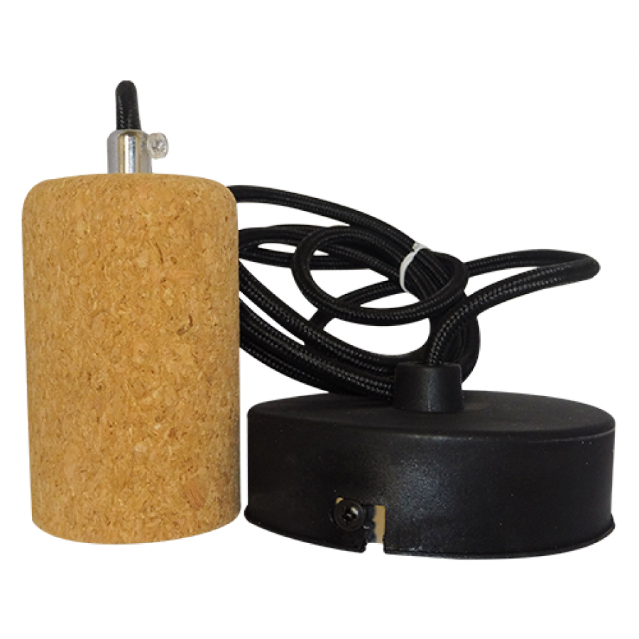 Ανάρτηση Ντουί Ε27 Φελλός-Ροζέτα Στρόγγυλη Σιδερένια Μαύρη Καλώδιο Υφασμάτινο Μαύρο 1,5mt Enjoy EL327106