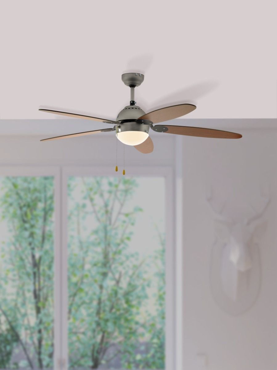 Μοντέρνος ανεμιστήρας οροφής με φως, ιδανικός για τον αερισμό δωματίων από 13m2 έως 27m2.