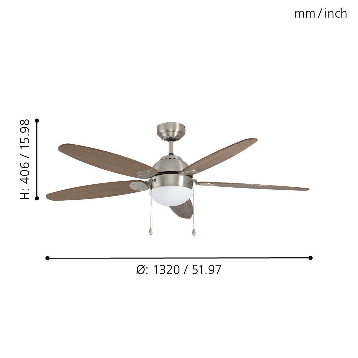 Ανεμιστήρας Οροφής Ø132x40cm Φωτισμό 1xE14 60W AC 220-240V,50Hz 3 Ταχύτητες Νίκελ-Καφέ Eglo Susale 35042