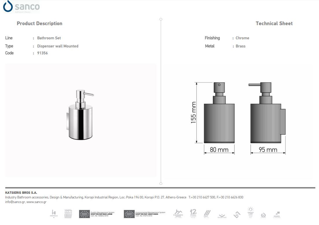 Ντισπένσερ Dispenser Επίτοιχο 500ml Sanco Metallic Bathroom Set 91351-Α03-500Ειδική Τιμή 67,50 € Κανονική τιμή 75,00 € -
