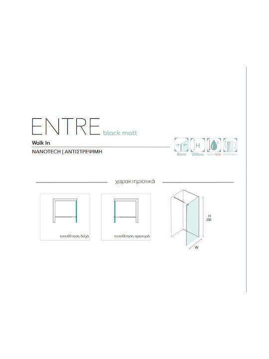 Διαχωριστικό Ντουζιέρας 99-102xY200cm Κρύσταλλο 8mm Νανοτεχνολογίας Προφίλ Χρωμέ Colorado Entre 100-Chrome