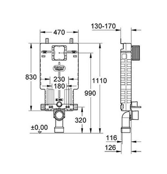 Εντοιχιζόμενο Καζανάκι για κτιστό τοίχο 2πλό τούβλο Grohe 38643