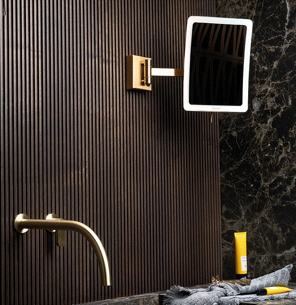 Επιτοίχιος Μεγεθυντικός Καθρέπτης x3 Led 5 watt 220-240V Gold 24K Brushed Sanco Led Cosmetic Mirrors MRLED-305-AB5