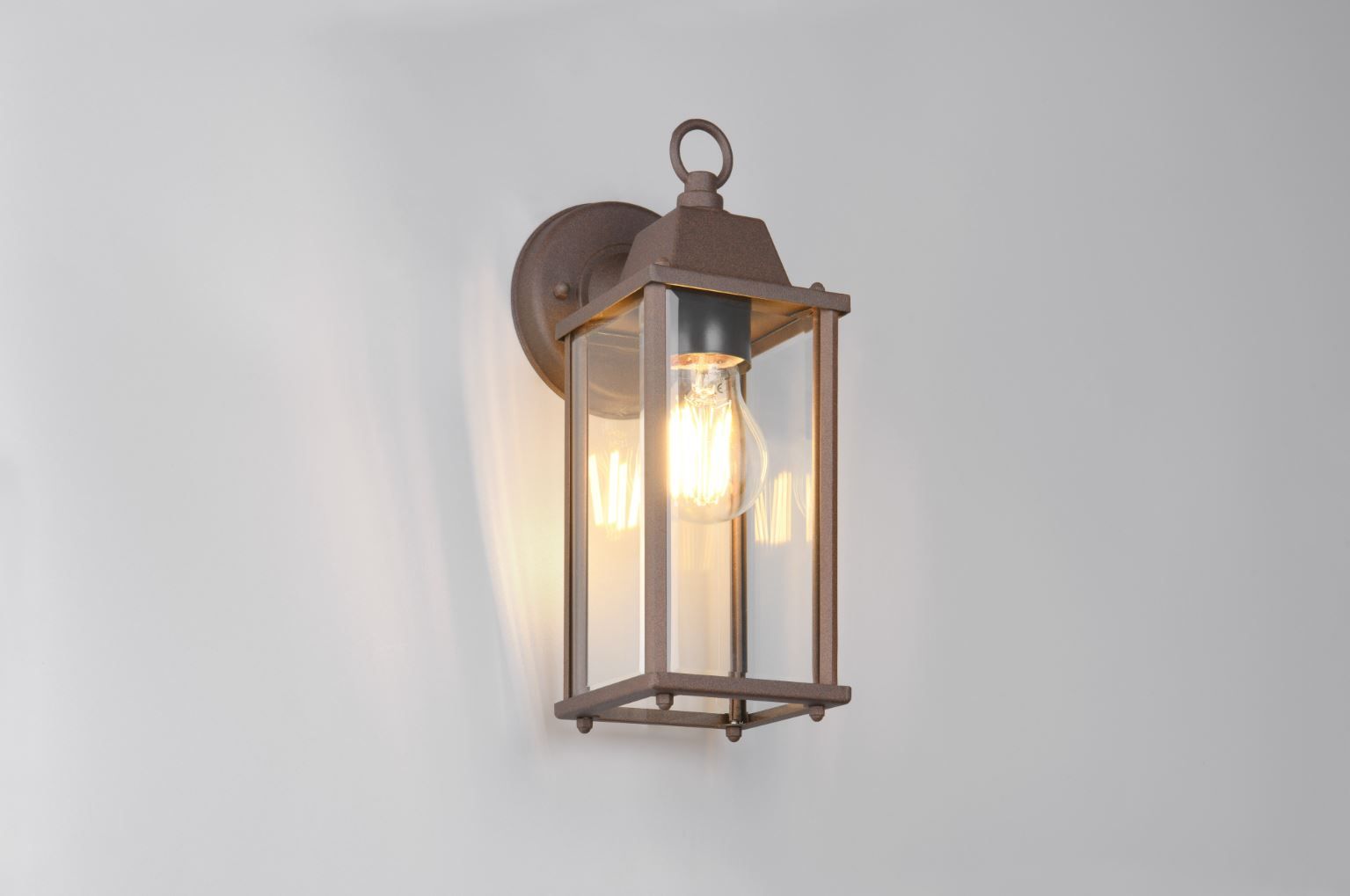 Φωτιστικό φαναράκι της Trio Lighting σε μπρούτζινο χρώμα, με λαμπτήρα E27, για χρήση σε εξωτερικούς χώρους.