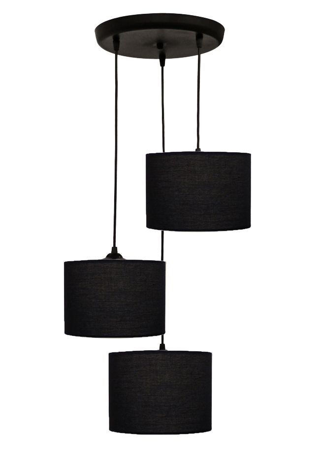 Φωτιστικό μοντέρνο οροφής 3φωτο ,ανισόπεδο με μαύρο σκελετό και μαύρα καπέλα κύλινδρος ΗΚ-03 PENDEL 3L ΜΑΥΡΟ-BL / BLACK-ΒL