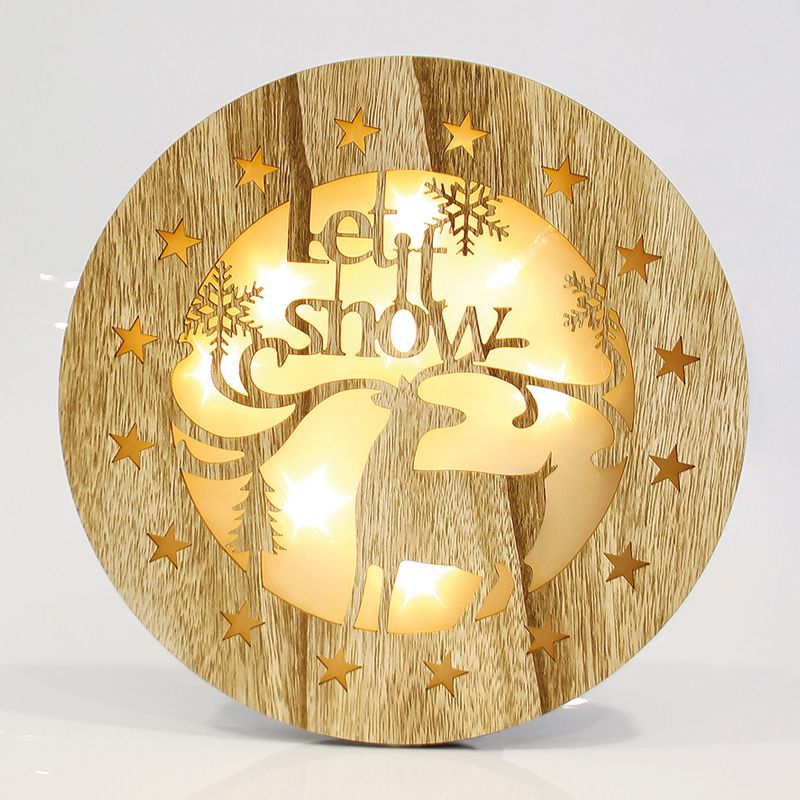 Καδράκι Ξύλινο Φωτιζόμενο Led Warm White Θερμό Λευκό Ø30εκ.Magic Christmas 600-40179