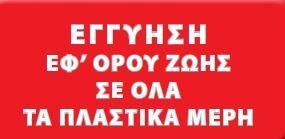 Εγγύηση στα πλαστικά μέρη: Εφ' όρου ζωής για όλα τα πλαστικά μέρη