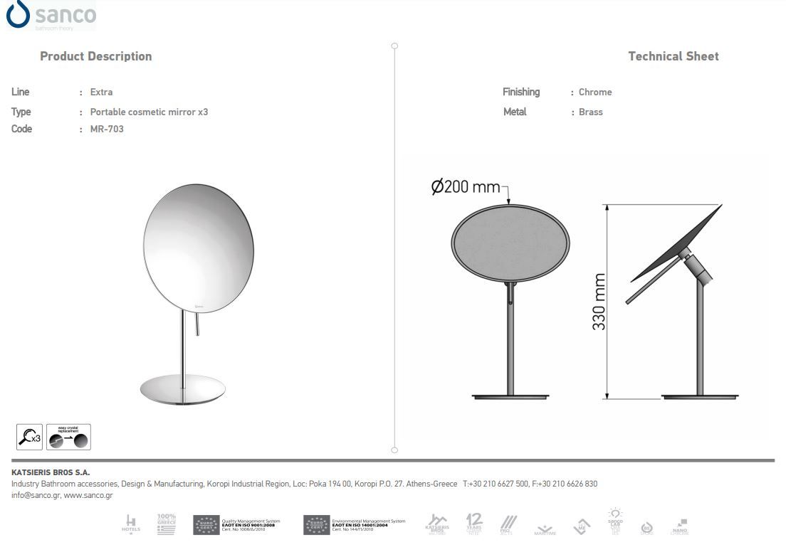 Καθρέπτης Μεγεθυντικός Επικαθήμενος Ø20 εκ. x3 Χρωμέ Sanco Cosmetic Mirrors MR-703-Α03Ειδική Τιμή 81,00 € Κανονική τιμή 90,00 € -