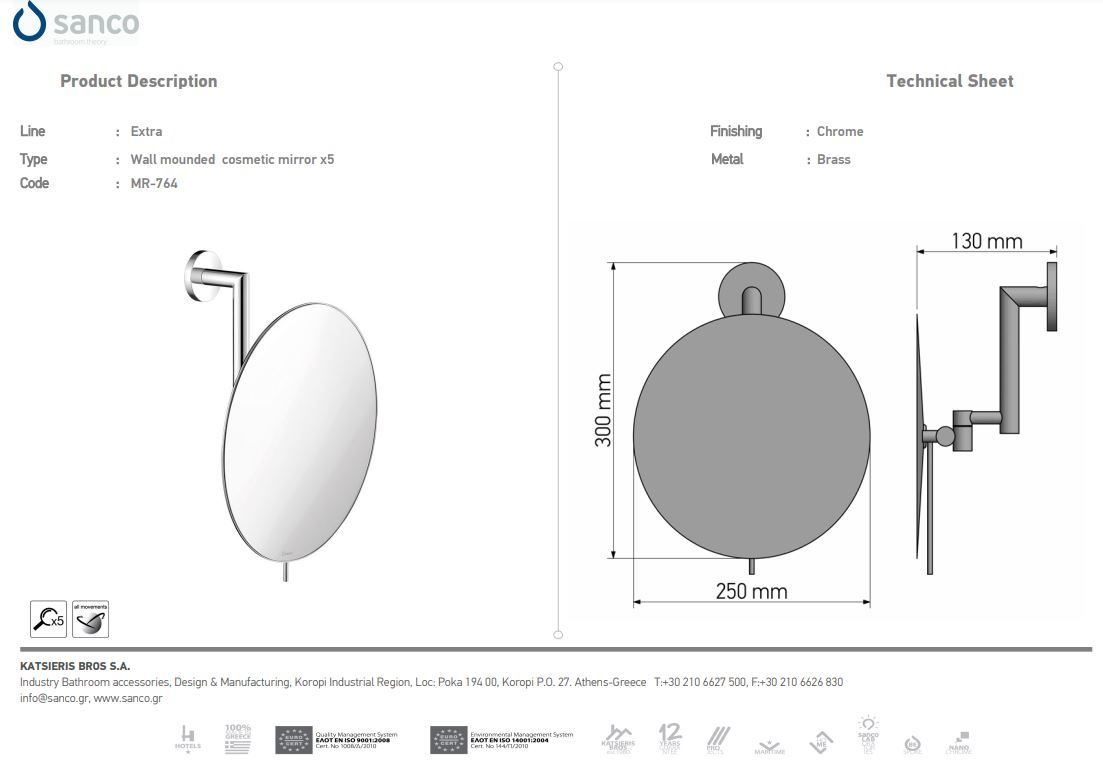 Καθρέπτης Μεγεθυντικός Επιτοίχιος Ø25 εκ. Χρωμέ Μεγέθυνση *5 Sanco Mirrors MR-764-Α03