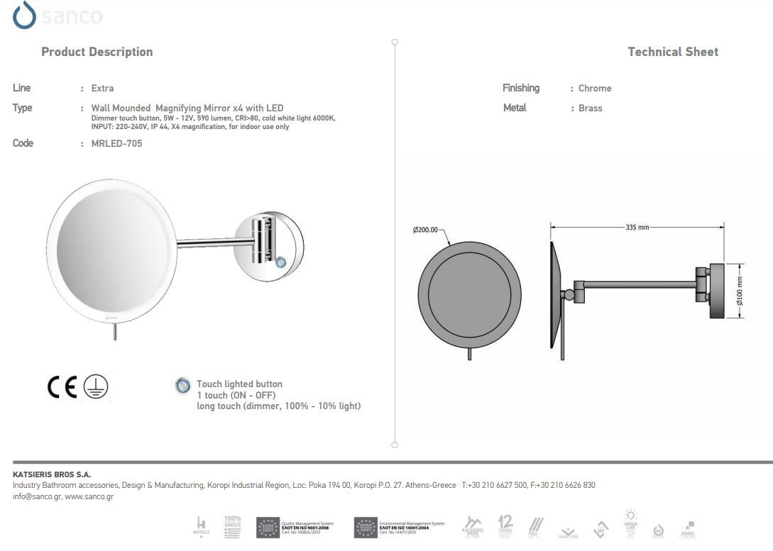 Καθρέπτης Μεγεθυντικός Ø20cm IP44 5w Led 12V Μεγένθυση x3 Sanco Bronze Mat MRLED-705-M25Ειδική Τιμή 301,50 € Κανονική τιμή 335,00 € -