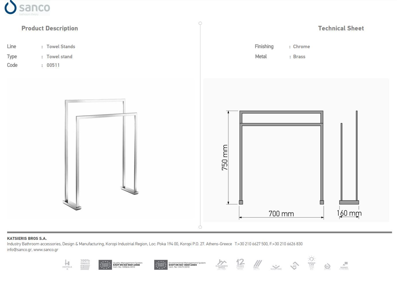 Καλόγερος Πετσετοκρεμάστρες Επιδαπέδιος Χρωμέ Sanco Extra Comfort 0511-A03Ειδική Τιμή 292,50 € Κανονική τιμή 325,00 € -