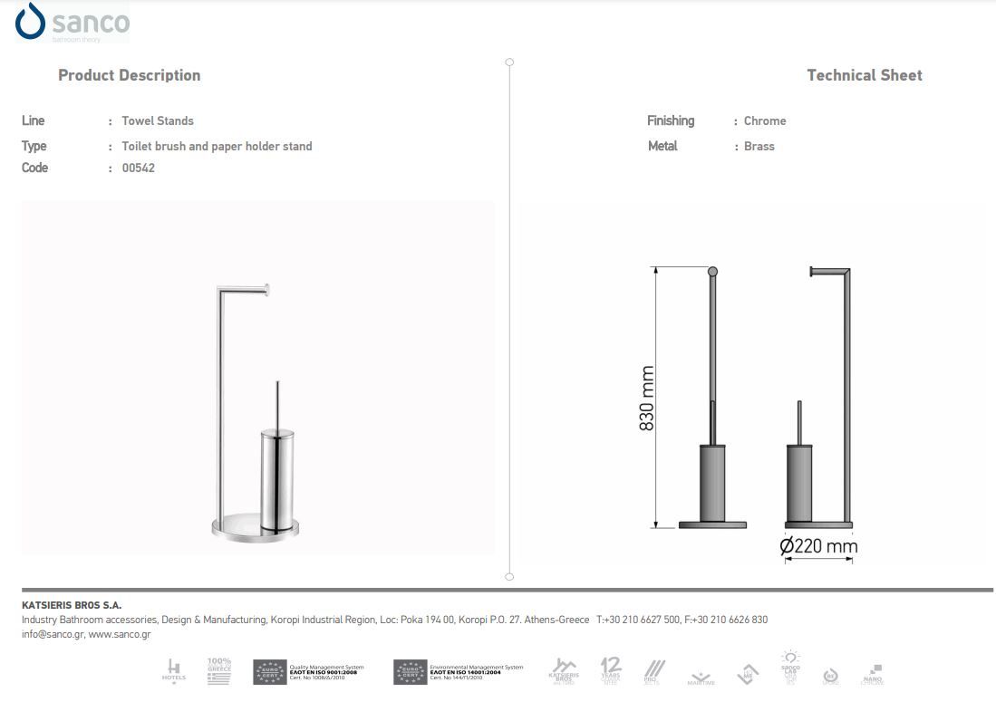Καλόγερος με Πιγκάλ-Χαρτοθήκη Επιδαπέδιος W220 x D220 x H830mm Ορείχαλκος Sanco Bronze Mat 0542-M25Ειδική Τιμή 328,50 € Κανονική τιμή 365,00 €