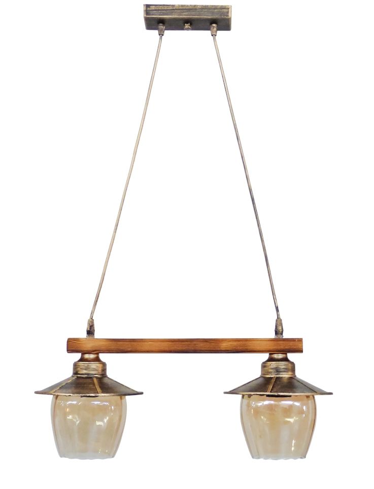 Κρεμαστό φωτιστικό με ράγα ξύλινη 2φωτο ,γυαλιά μελί σε χρώμα μπρονζέ R-98CABLE RAGA 2/L BRONZE