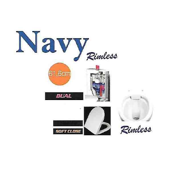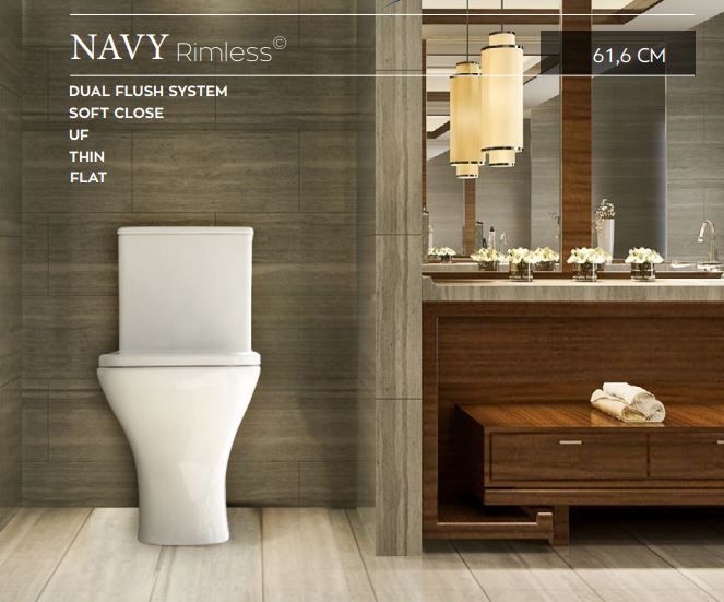 Λεκάνη Επιδαπέδια Κομπλέ Σετ Χ.Π Π.Σ Κάλυμμα Slim-Soft Close Προβολή 61,6 cm Ceramita Navy RimlessΕιδική Τιμή 245,00 € Κανονική τιμή 303,80 €