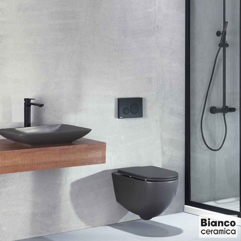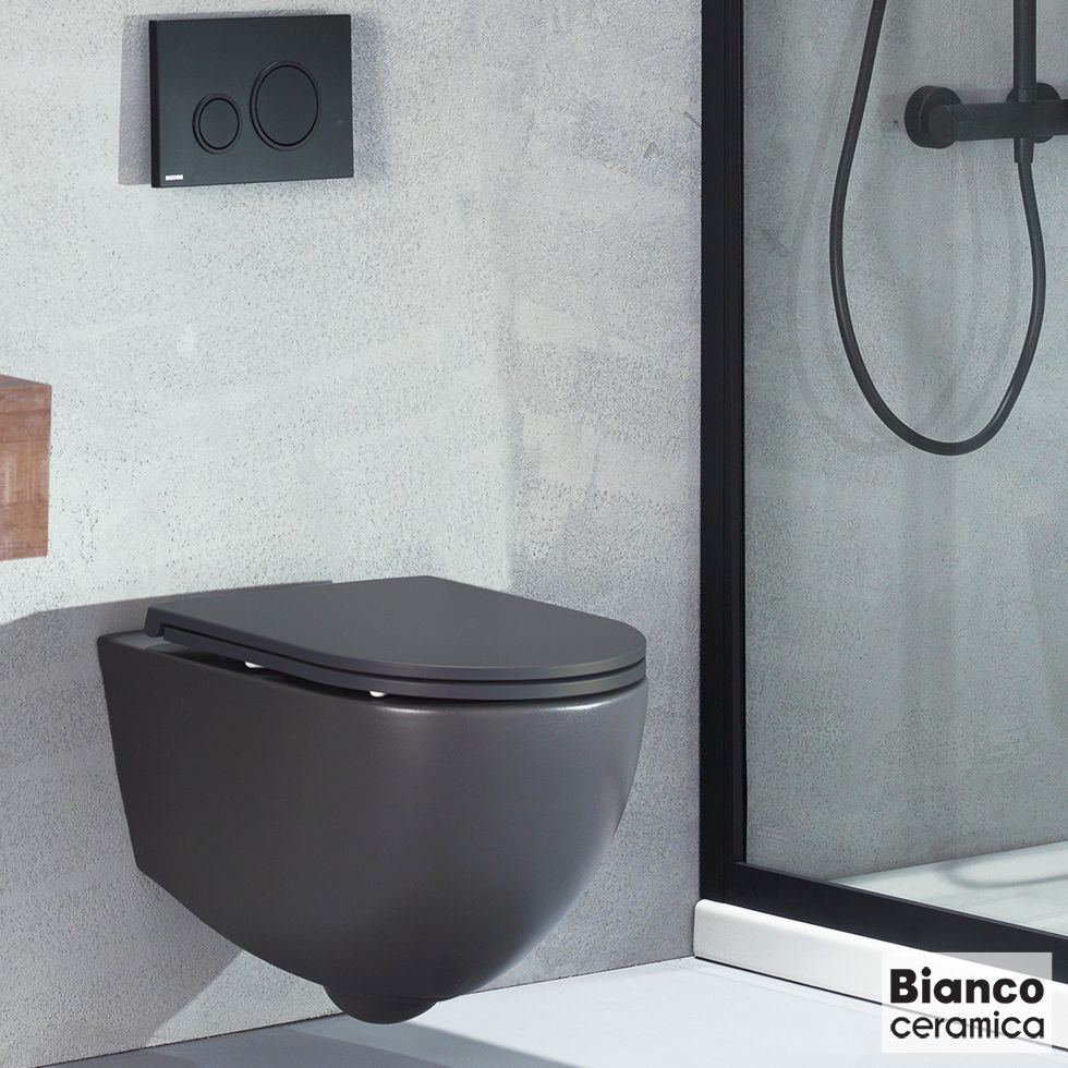Λεκάνη Κρεμαστή LENTA/53 Rimless με κάλυμμα Soft Close MS38C, Bianco Ceramica Anthracite Matt 381600C-421