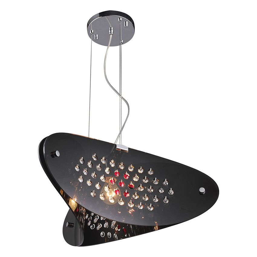 Κρεμαστό φωτιστικό (μονόφωτο) κατασκευασμένο με βάση χρωμίου και plexiglass χρώματος μαύρου. Φέρει διακοσμητικά στοιχεία από κρύσταλλα asfour διάφανα και κόκκινου χρώματος.Ύψος: 130 εκ.Διάμετρος: 62 εκ.Λαμπτήρες: 1 τεμ.Τύπος Λαμπτήρα: Ε27Watt: 100