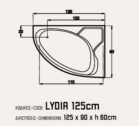 Η μπανιέρα της σειράς Lidya διατίθεται σε Αριστερή ή Δεξιά έκδοση: 165x100 εκ., 150x100 εκ., 140x90 εκ., 125x90 εκ.
