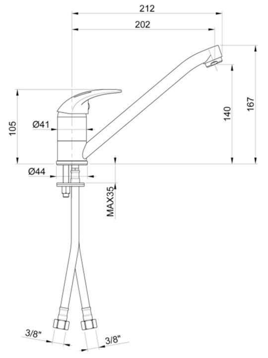 Μπαταρία Νεροχύτη Αναμεικτική Chrome Sanitec ECO-2 00-02-00248