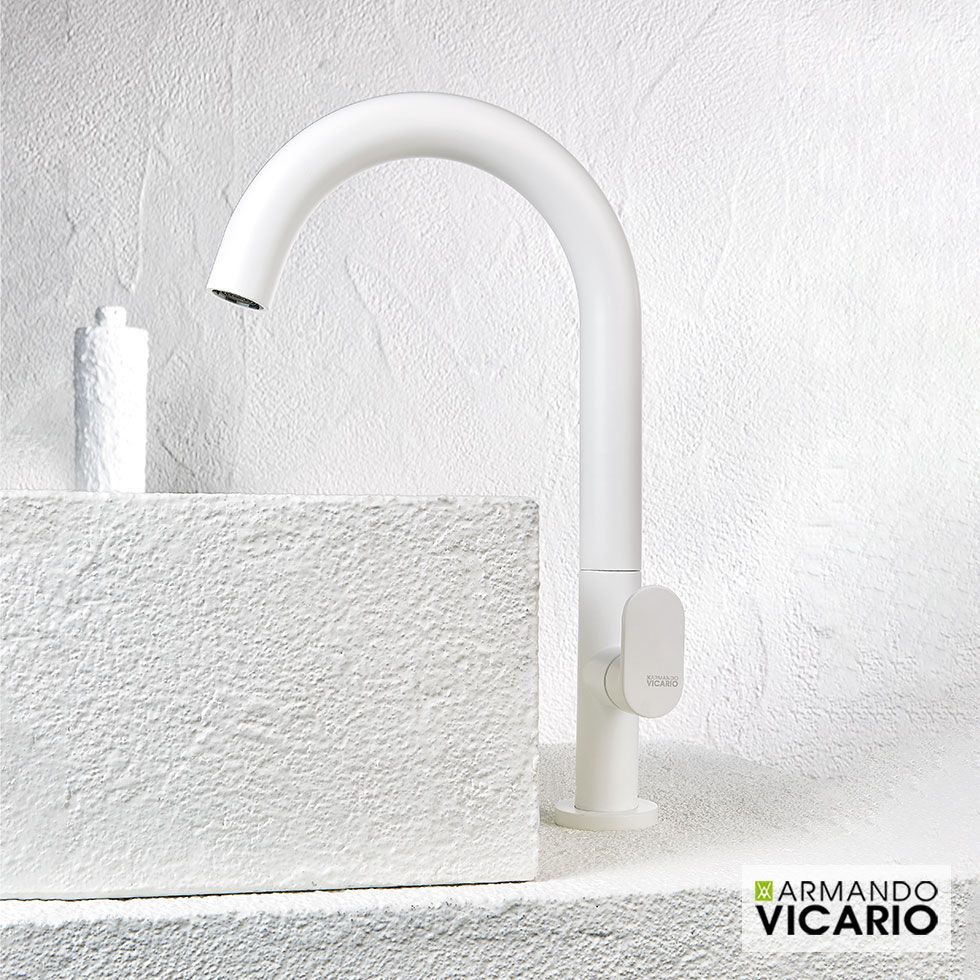 Μπαταρία Νιπτήρα Υψηλή με Βαλβίδα Clic-Clac Slim Vicario White Matt 500041-300