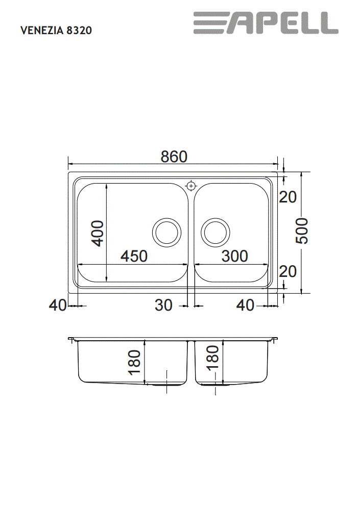 Νεροχύτης Ένθετος Λείος 86x50 εκ. για ερμάριο 90 εκ.Apell Anniversario 8320-110Ειδική Τιμή 245,00 € Κανονική τιμή 303,80 €