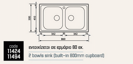 Διαστάσεις Νεροχύτη: 86 Χ 50 εκ.