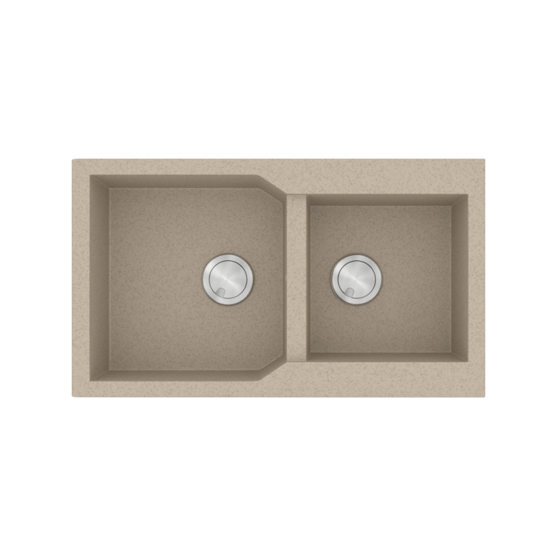 Νεροχύτης Κουζίνας Γρανίτης με δύο γούρνες 86*50 εκ. Χρώμα Sabbia Ένθετος για ερμάριο 90 εκ. Sanitec 804.