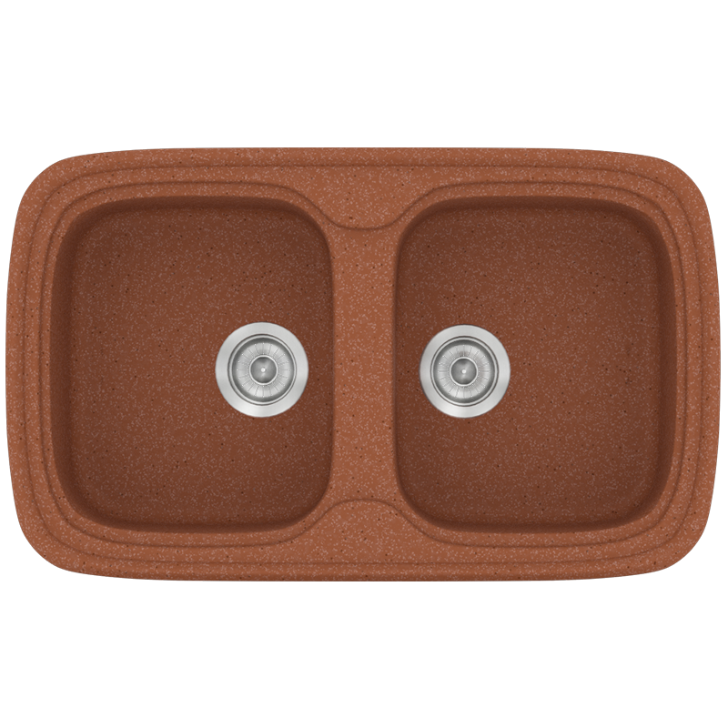 Νεροχύτης Κουζίνας Συνθετικός 82x50 εκ.2 Γούρνες Granite Terracotta Ένθετος Eρμάριο 80 εκ.Sanitec Premium 312-20