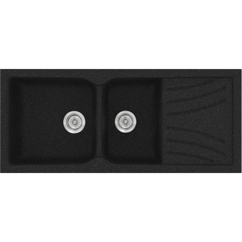 Νεροχύτης Κουζίνας Συνθετικός Granite Black 115*50 εκ. Ένθετος Eρμάριο 80 εκ. Δύο γούρνες & Ποδιά Sanitec Electric 323